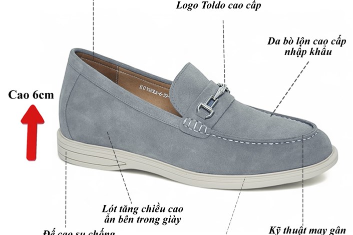 Mẫu giày Toldo BM1020 da lộn cao cấp, chất liệu da mềm mại giúp đi lại cực kỳ thoải mái. Thiết kế giúp tăng chiều cao đến 6cm, đế khâu chắc chắn, phụ kiện kim loại sang trọng. Phối hợp hoàn hảo với quần âu, jean, kaki – đi làm, đi chơi hay hẹn hò đều hợp.