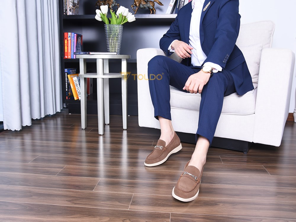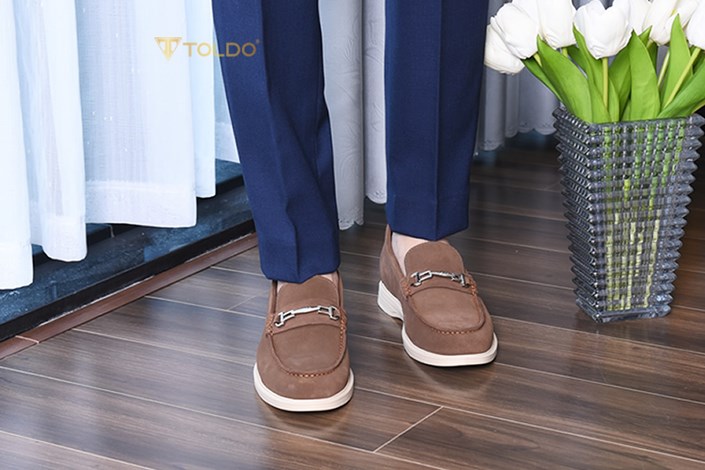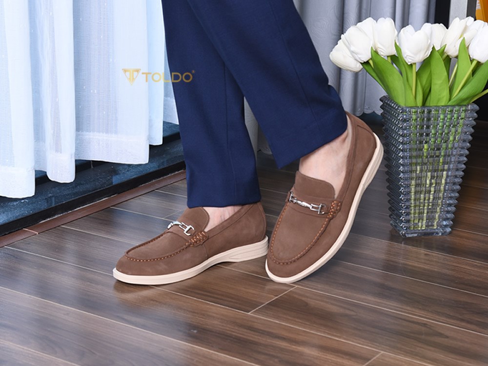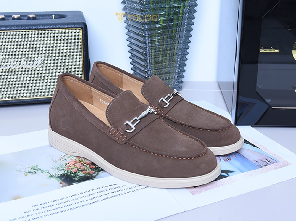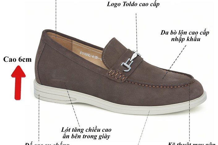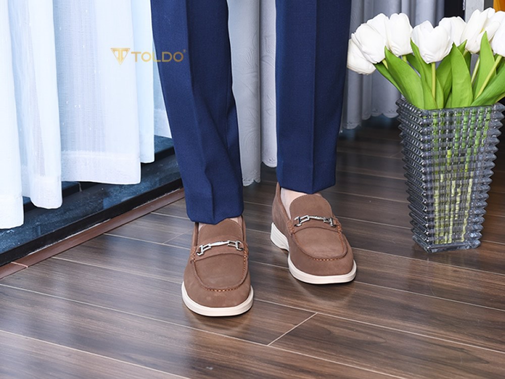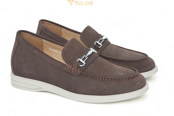 Giày cao nam Toldo CM1020 Nâu với chất liệu da bò lộn cao cấp, mềm mại và thoáng khí, mang lại cảm giác thoải mái suốt ngày dài. Thiết kế giúp tăng chiều cao 6cm, đế khâu chắc chắn, điểm nhấn phụ kiện kim loại tinh tế. Phù hợp đi làm, đi chơi, phối cùng quần âu, jean, kaki.