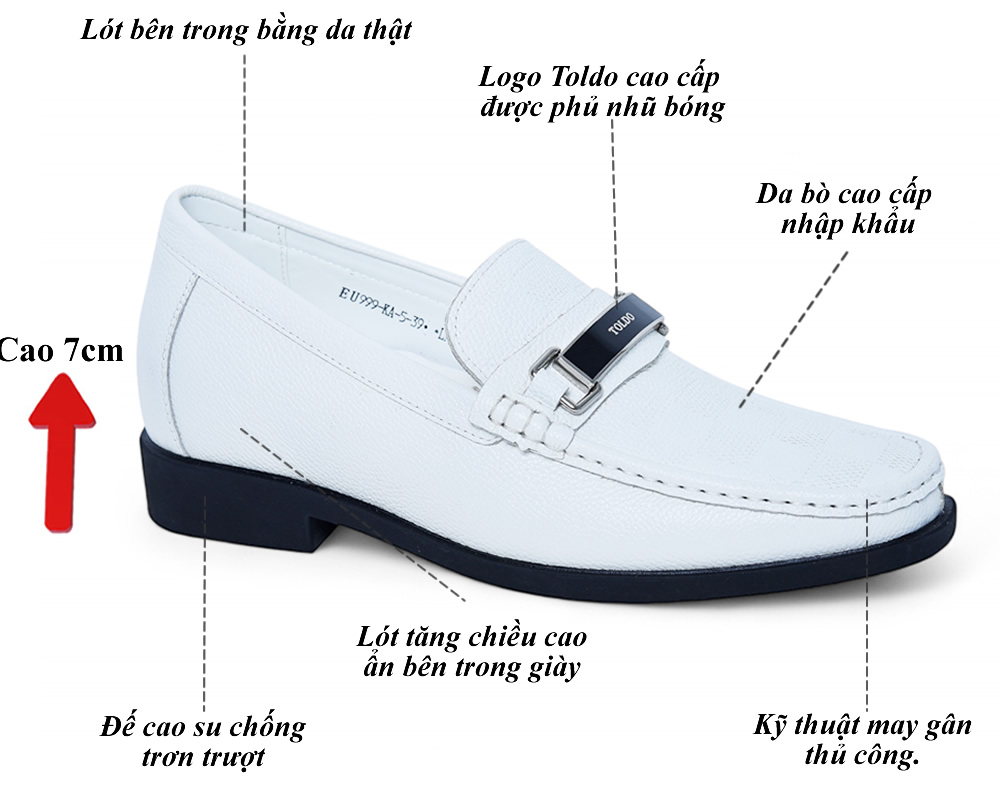 Giày cao 7cm cho nam màu trắng