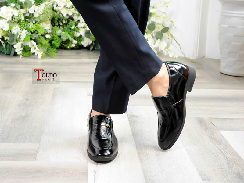 Giày da bóng dập vân da thật