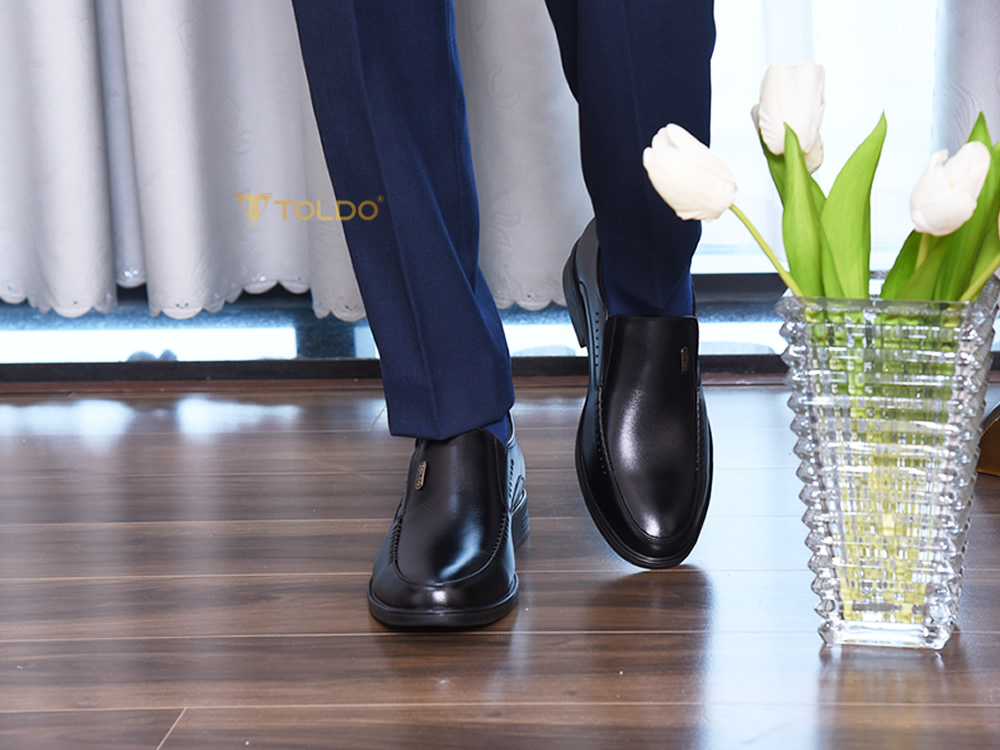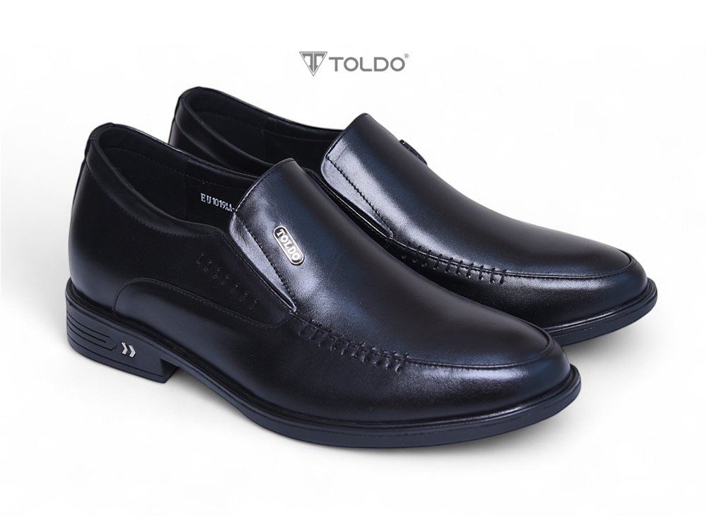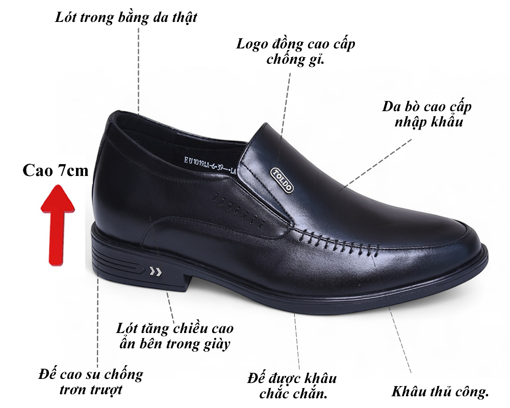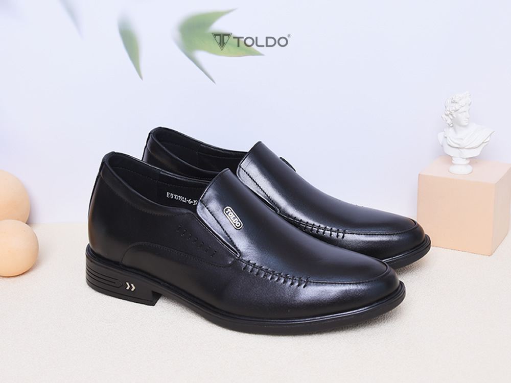 Mẫu giày tăng 7cm từ da bò thật mềm mại, mang lại cảm giác đi lại cực kỳ thoải mái. Giày được khâu chắc chắn, lót trong bằng da cao cấp, có logo đồng tinh xảo thương hiệu Toldo. Thiết kế sang trọng, phù hợp mọi hoàn cảnh, giúp bạn tự tin suốt ngày dài.
