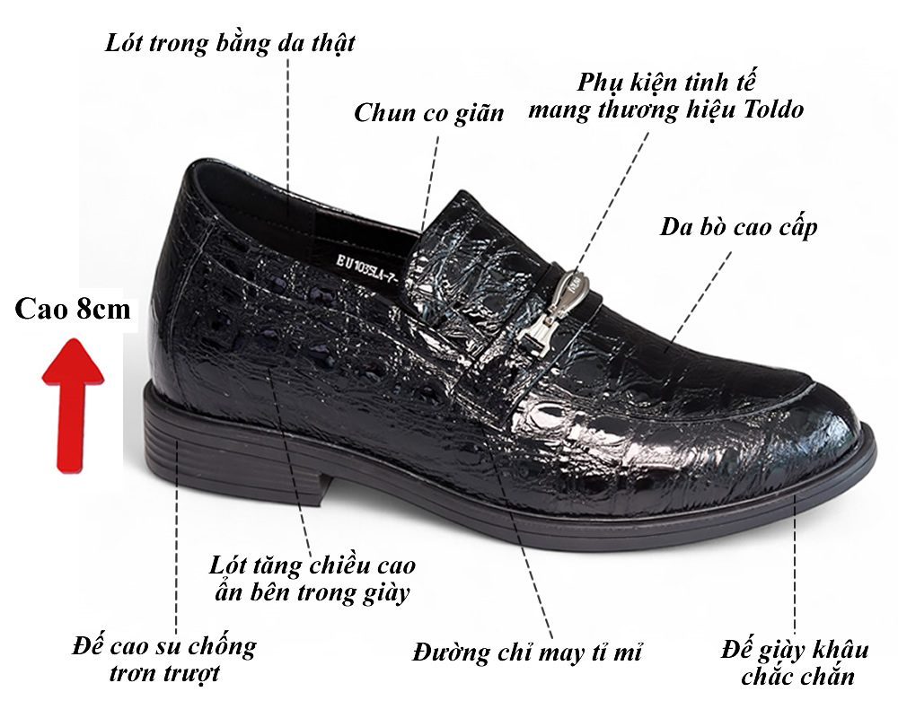 Giày cao 8cm nam vân cá sấu đế khâu