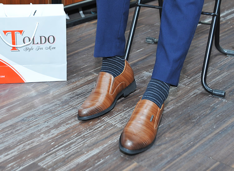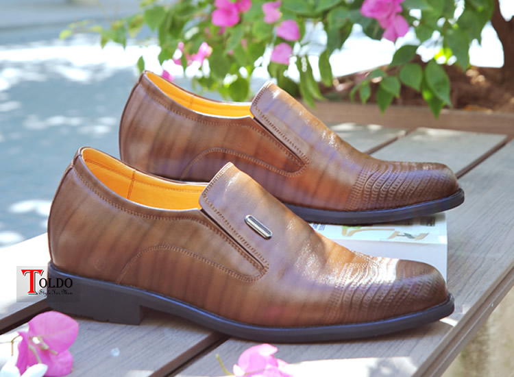 Giày cao 7cm cho nam vân kẻ da bóng