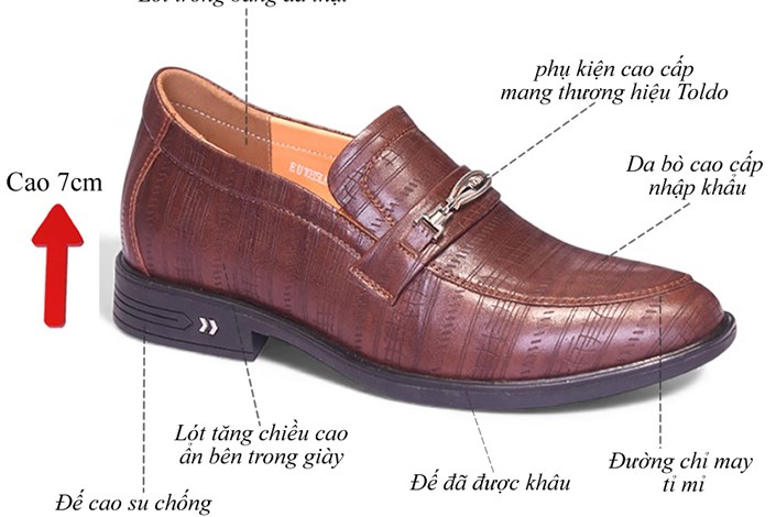 Giày cao nam 7cm da mềm nhẹ