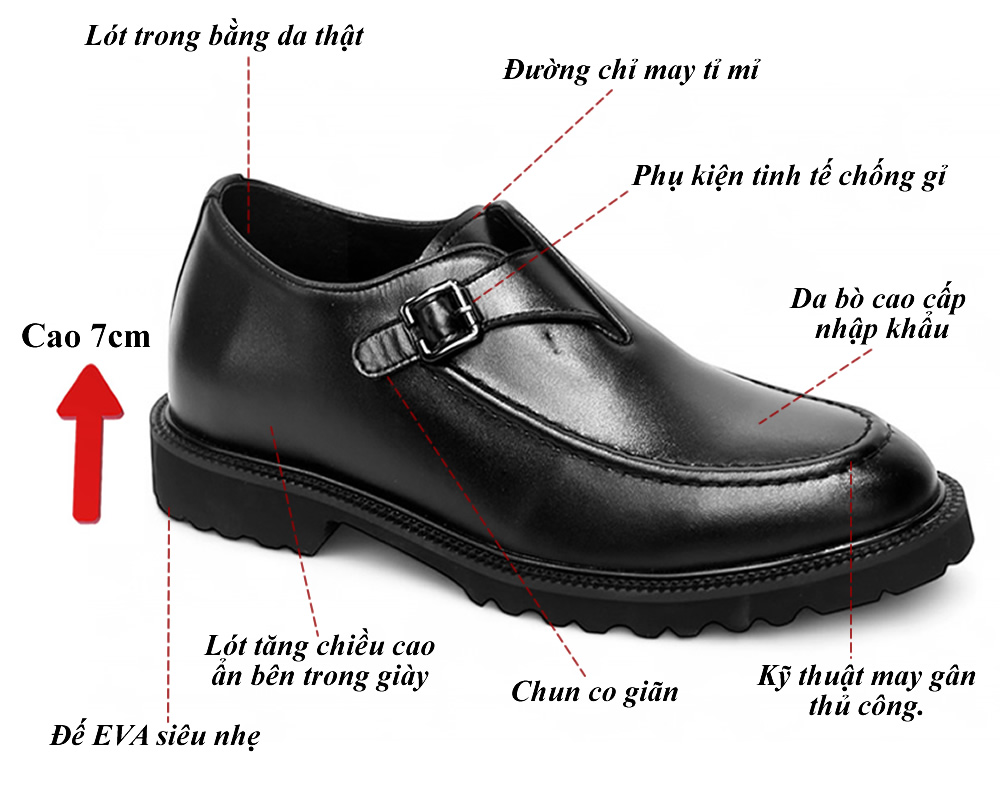 Giày cao nam 7cm đế eva siêu nhẹ