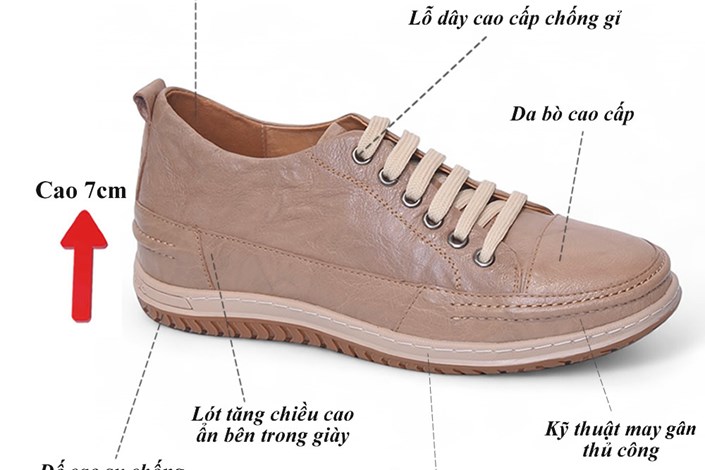 Giày cao nam 7cm thể thao đế khâu