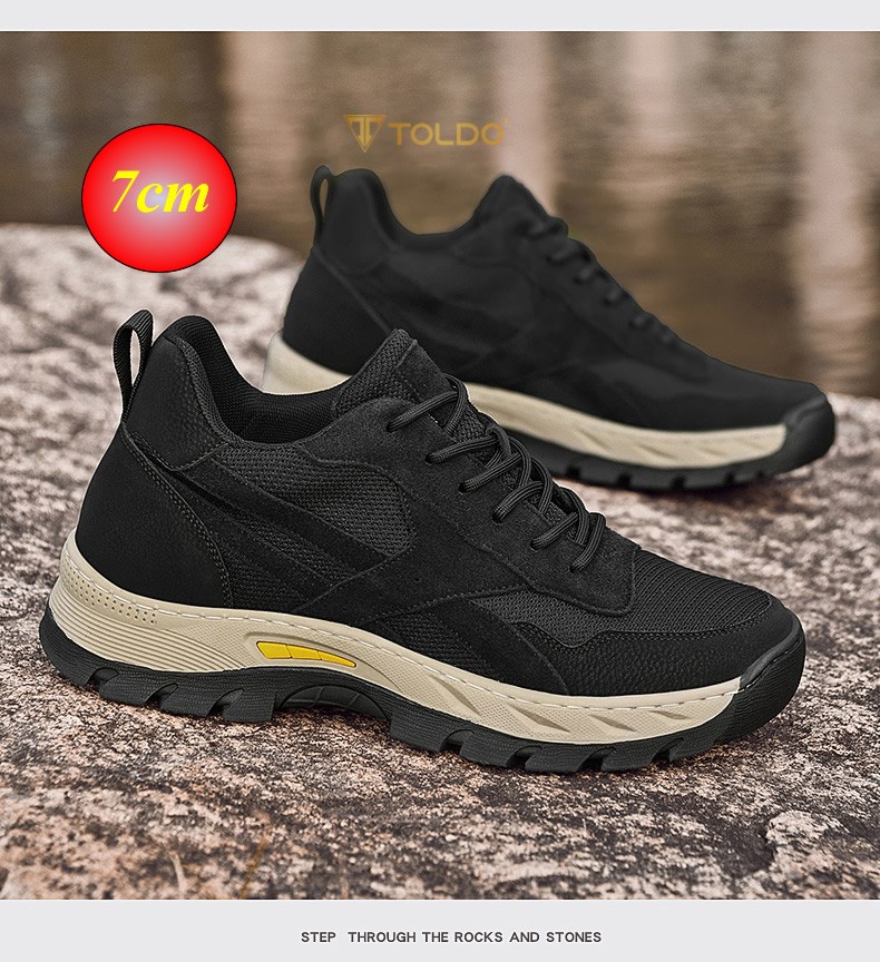 Mẫu giày thể thao tăng 7cm với thiết kế năng động, chất liệu vải lưới thoáng khí kết hợp da lộn bền chắc. Đế cao su đúc siêu nhẹ, êm chân khi di chuyển. Phom dáng trẻ trung, dễ phối đồ, thích hợp đi chơi, du lịch, vận động nhẹ mà vẫn tôn dáng hiệu quả.