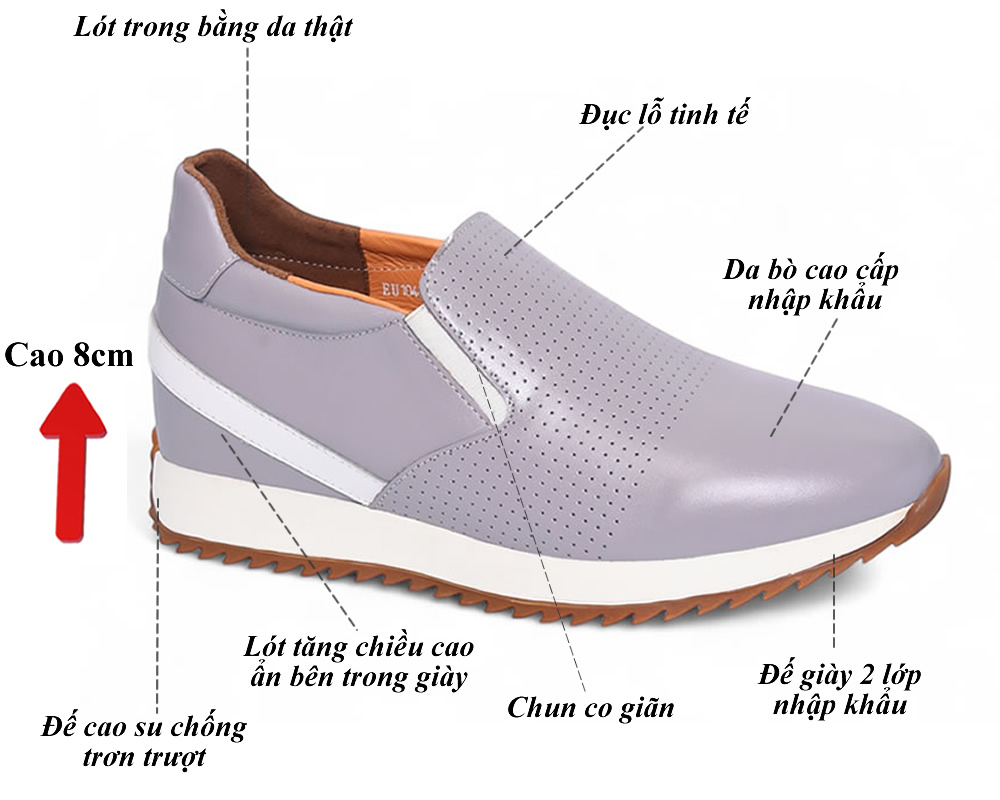 Giày cao 8cm thể thao không dây