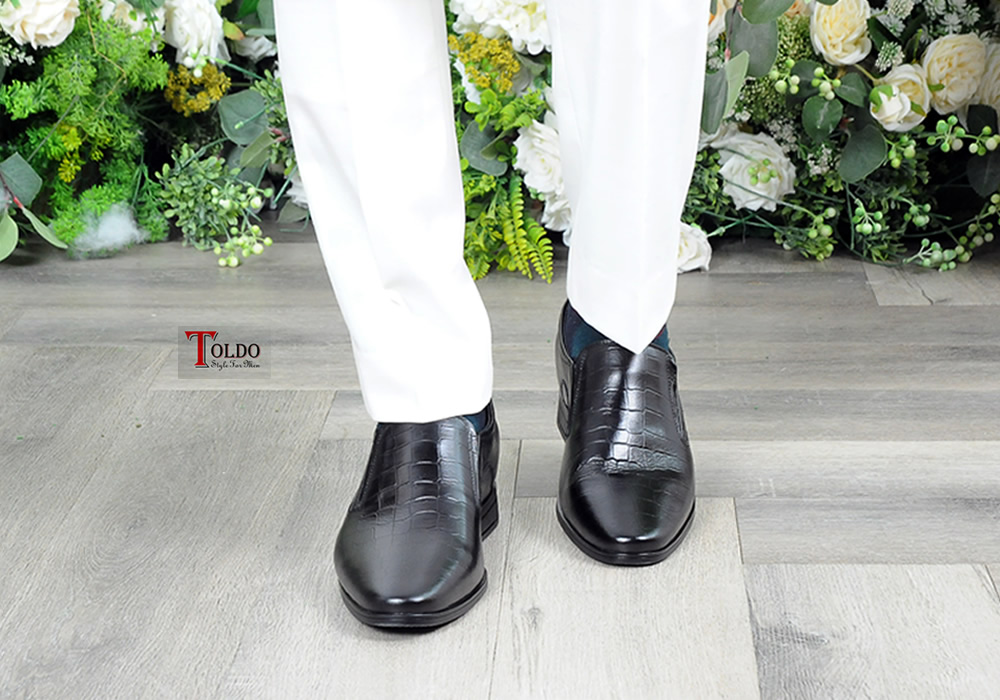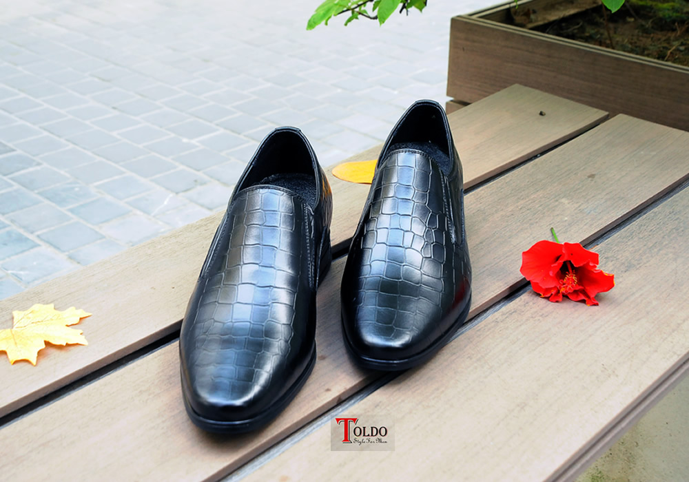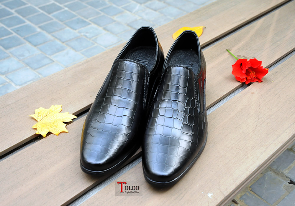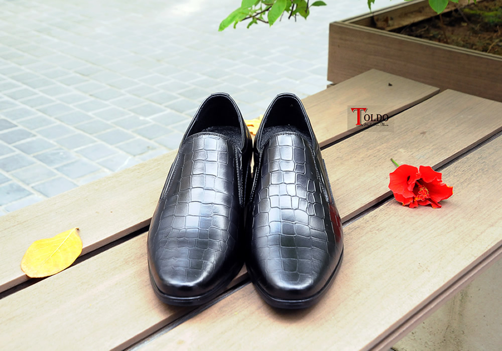 giày lười màu đen vân cá sấu