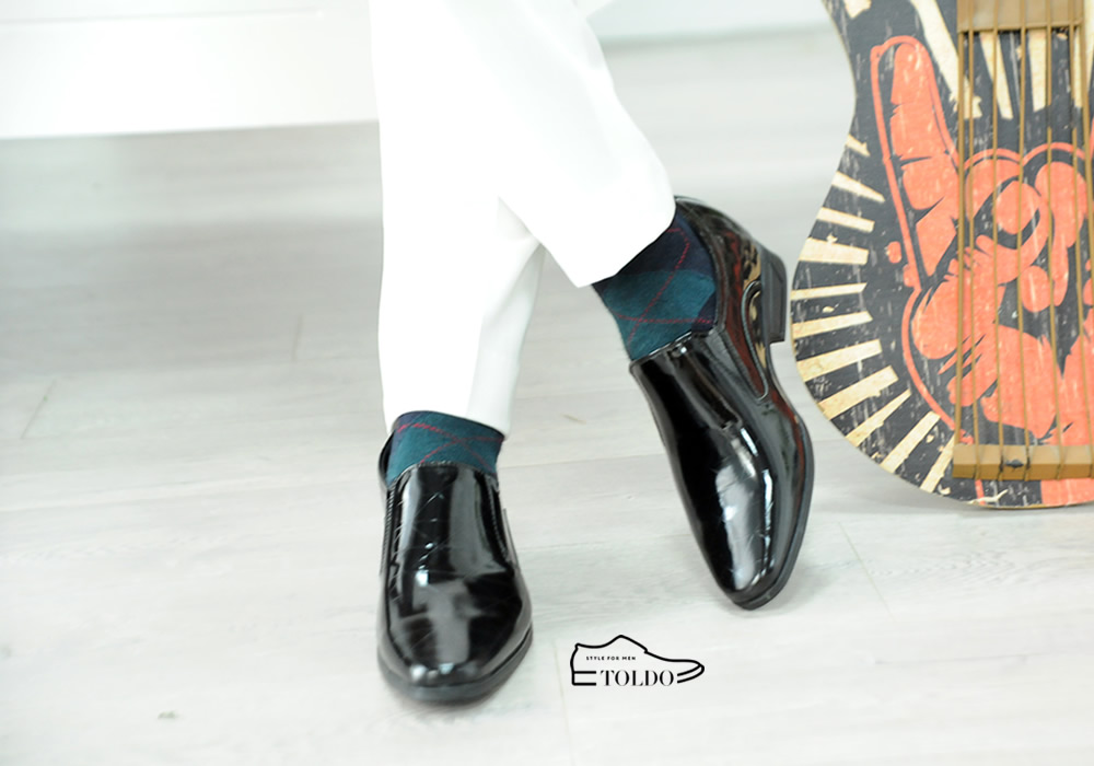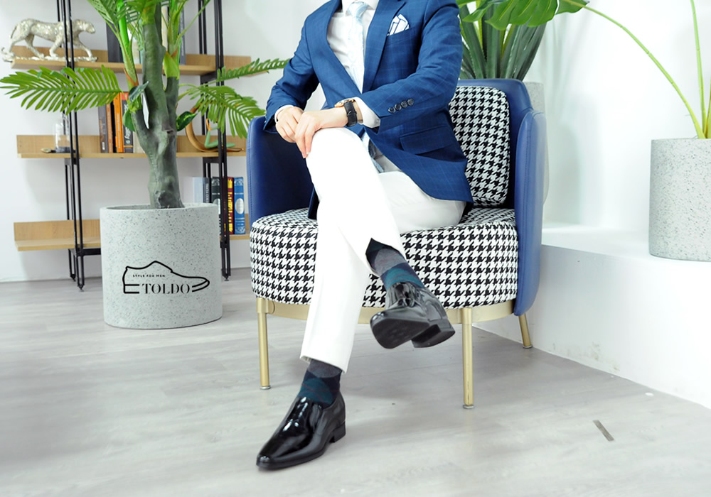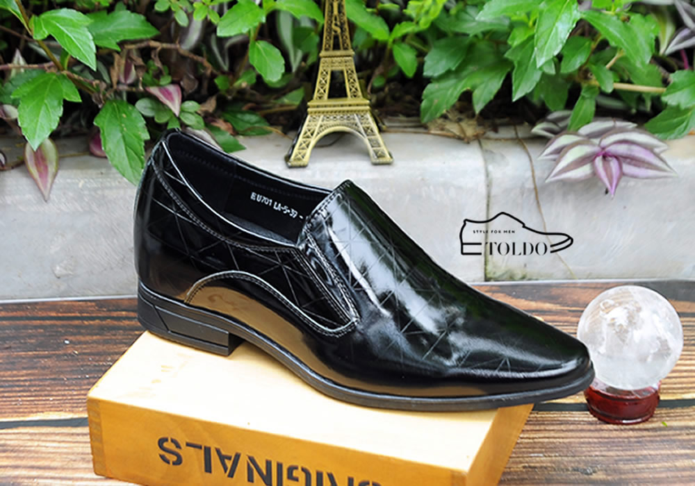 Giày cao nam vân kẻ đen bóng