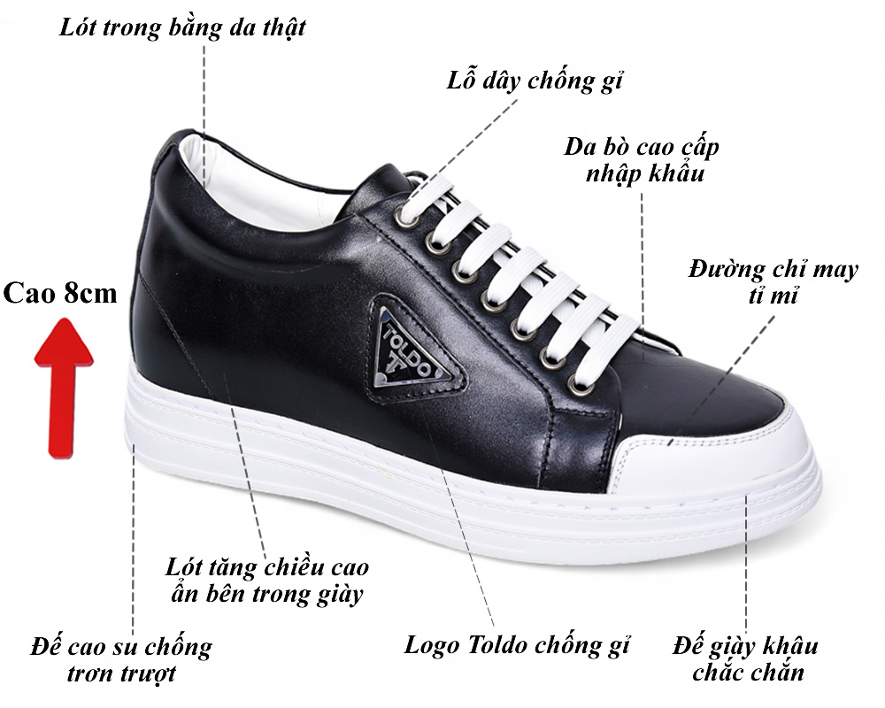 Giày cao thể thao 8cm da thật