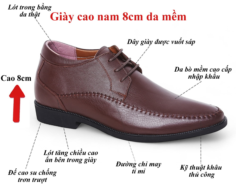 Giày khâu tăng 8cm chiều cao da mềm 8