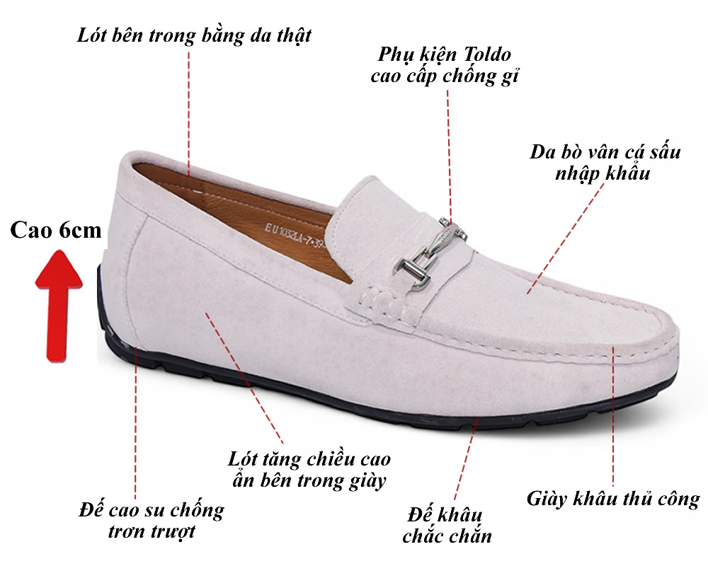 Giày lười cao 6cm cho nam da thật