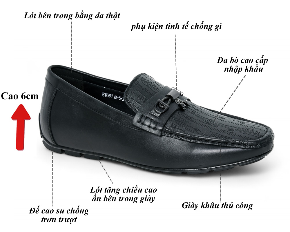 Giày lười cao 6cm cho nam da thật