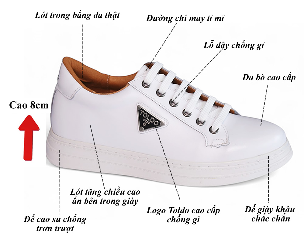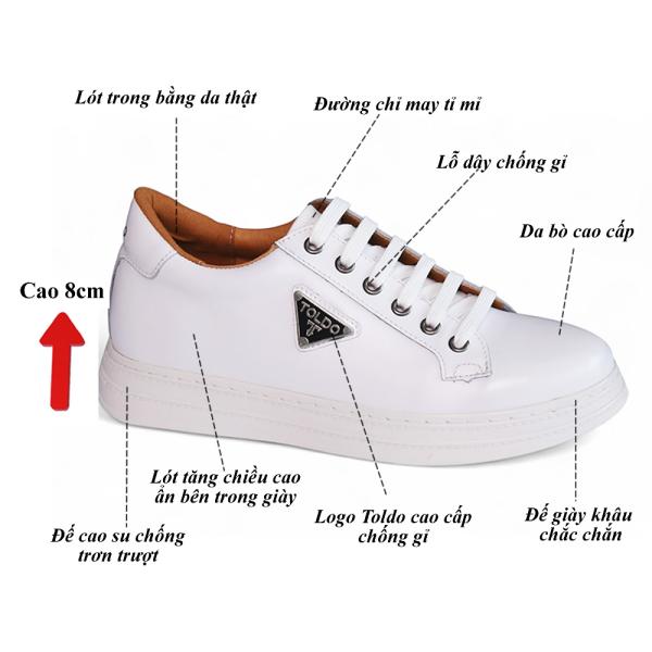 Giày nam cao 8cm thể thao màu trắng 8