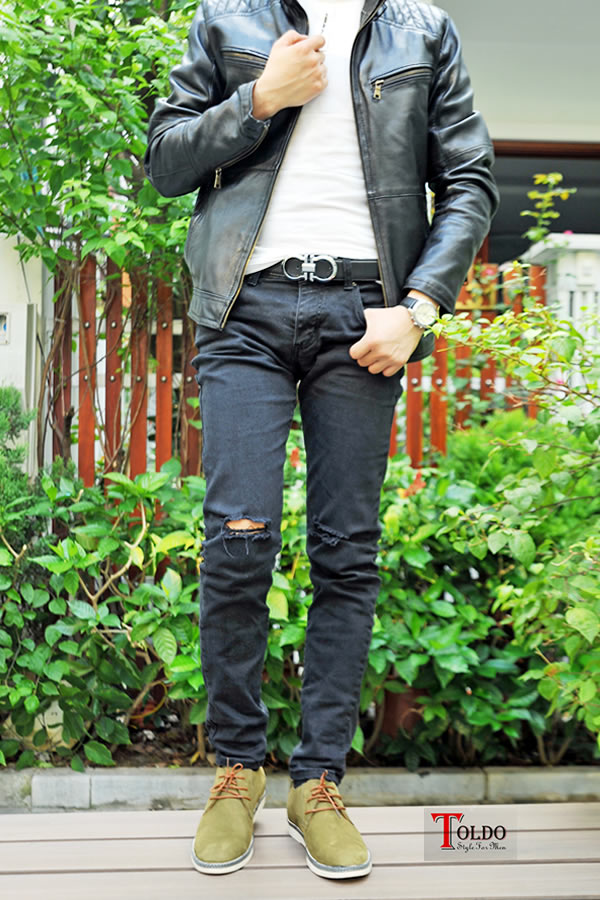 Giày cao nam da bò sần đế khâu