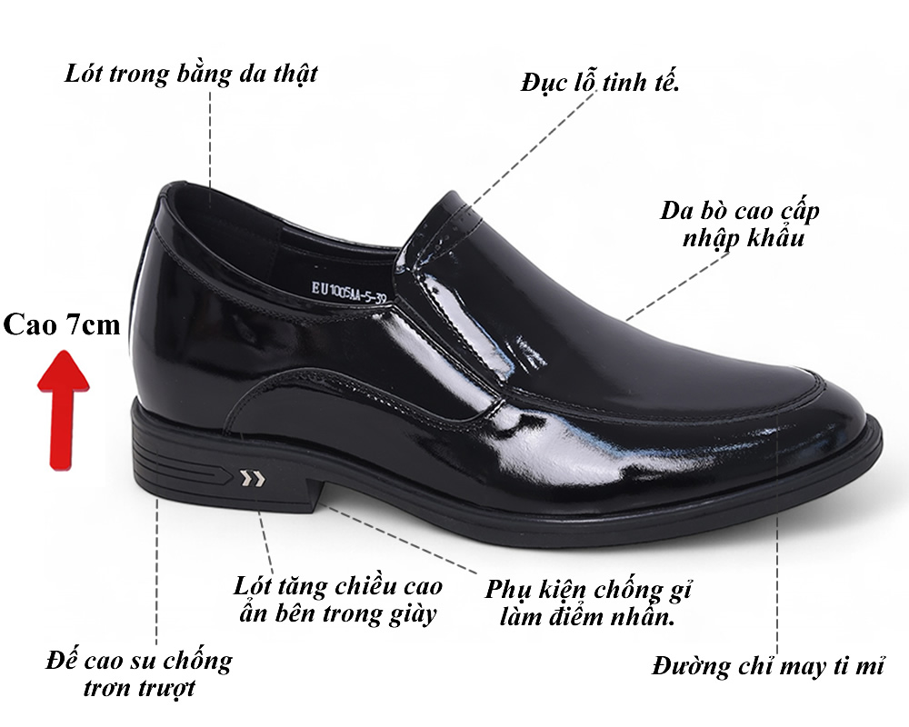 Giày tăng 7cm da bóng lịch lãm