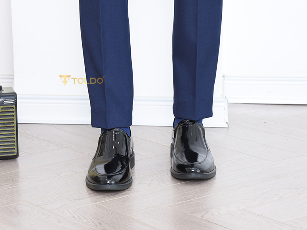 giày cao nam da bóng màu đe