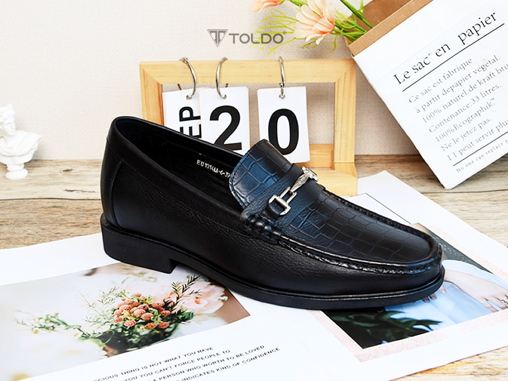 Giày tăng chiều cao 7cm, làm từ da bò cao cấp với mặt trên dập vân cá sấu sang trọng. Đường khâu tỉ mỉ, chắc chắn, đảm bảo độ bền vượt trội. Phù hợp đi làm, đi chơi, dạo phố hay tham dự các dịp quan trọng, tôn lên vẻ lịch lãm, nam tính.